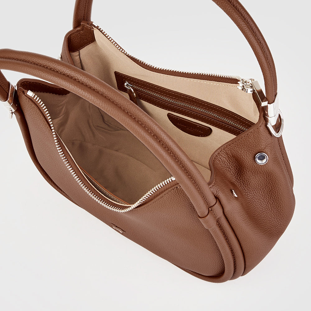 A sophisticated reinterpretation of the classic hobo, the Bow collection boasts a distinctive hobo silhouette, with a convex base that elegantly curves outward. The bag’s graceful structure is complemented by thick, luxurious hobo handles, while the adjustable leather strap offers versatile carrying options for effortless elegance.