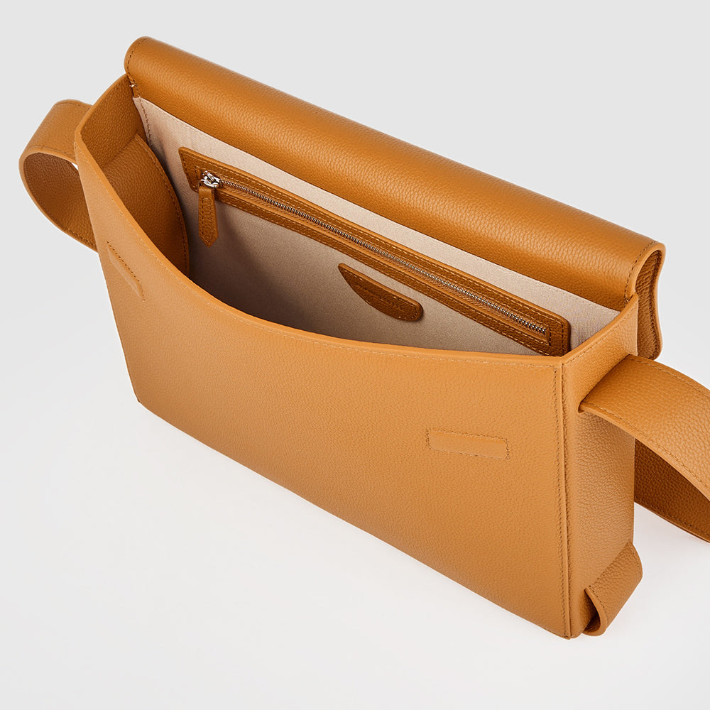 Forma – a refined interpretation of the classic camera bag silhouette, elevated with a structured boxy profile and clean architectural lines. Crafted from supple pebbled leather and finished with the signature Braun Büffel text logo, its minimal flap-front design feels both timeless and modern. With an adjustable leather strap that sits comfortably on the shoulder or across the body, Forma carries quiet confidence in every wear.