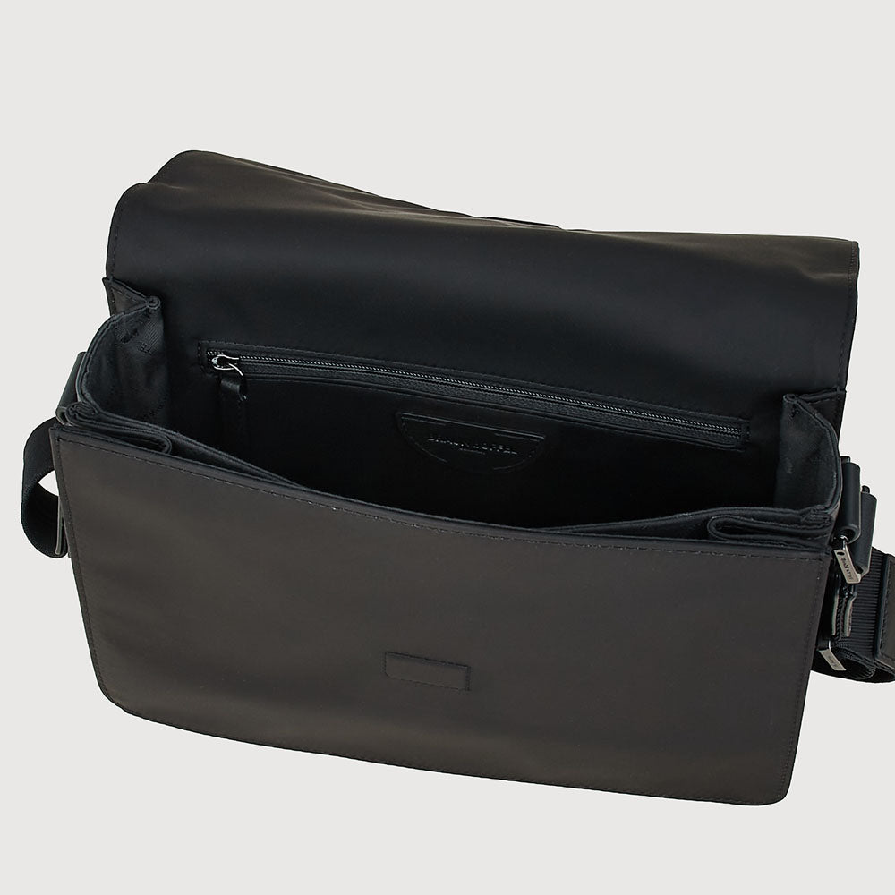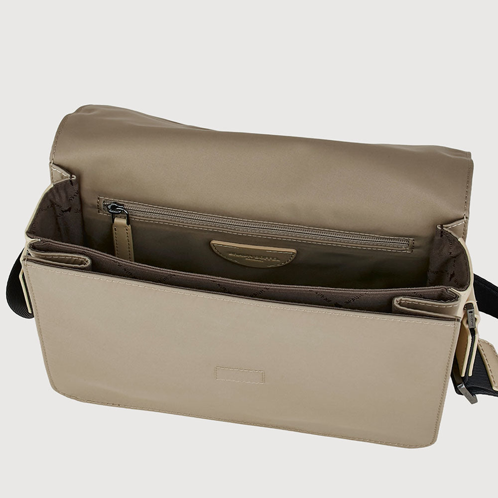 Built for the modern traveler, the Weben Small Messenger combines durable nylon with nappa leather trim for a refined yet utilitarian appeal. Thoughtful details, including an expandable front compartment with snap button closure, keep essentials within easy reach, making each piece travel-ready while maintaining a practical, contemporary silhouette.