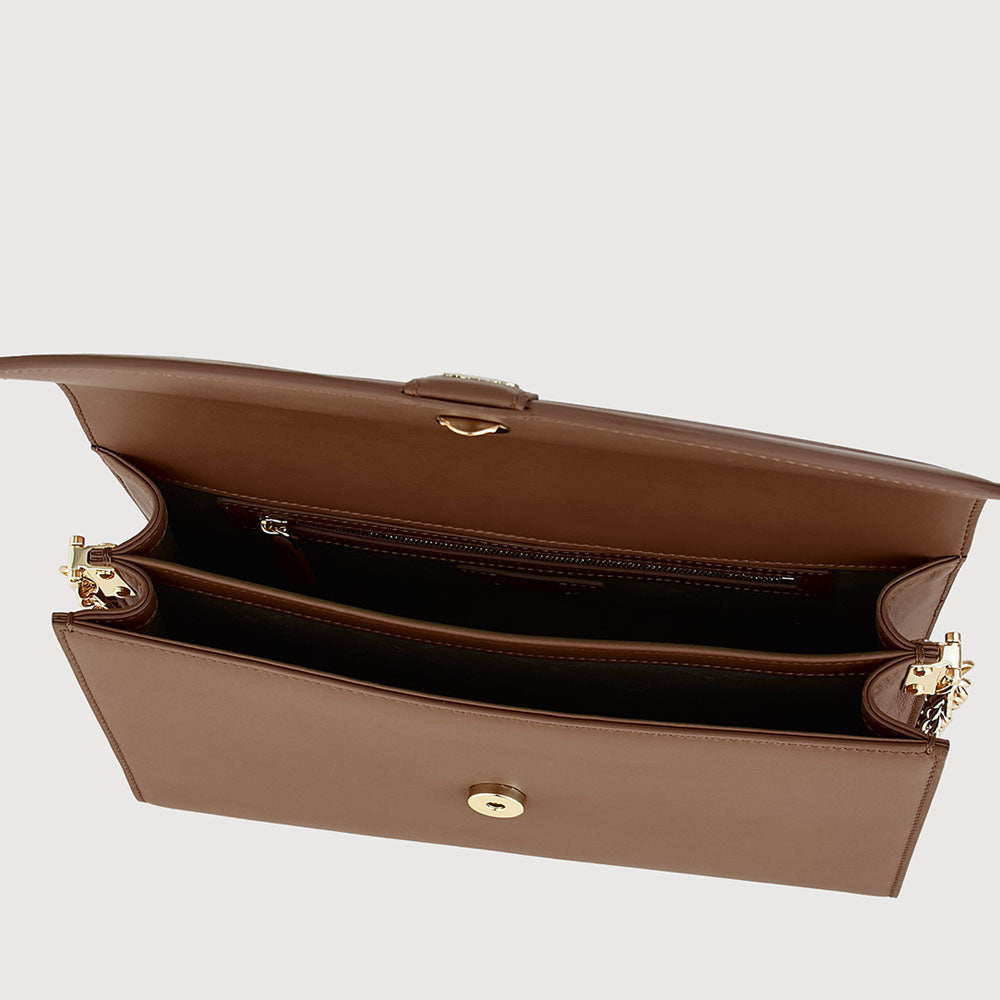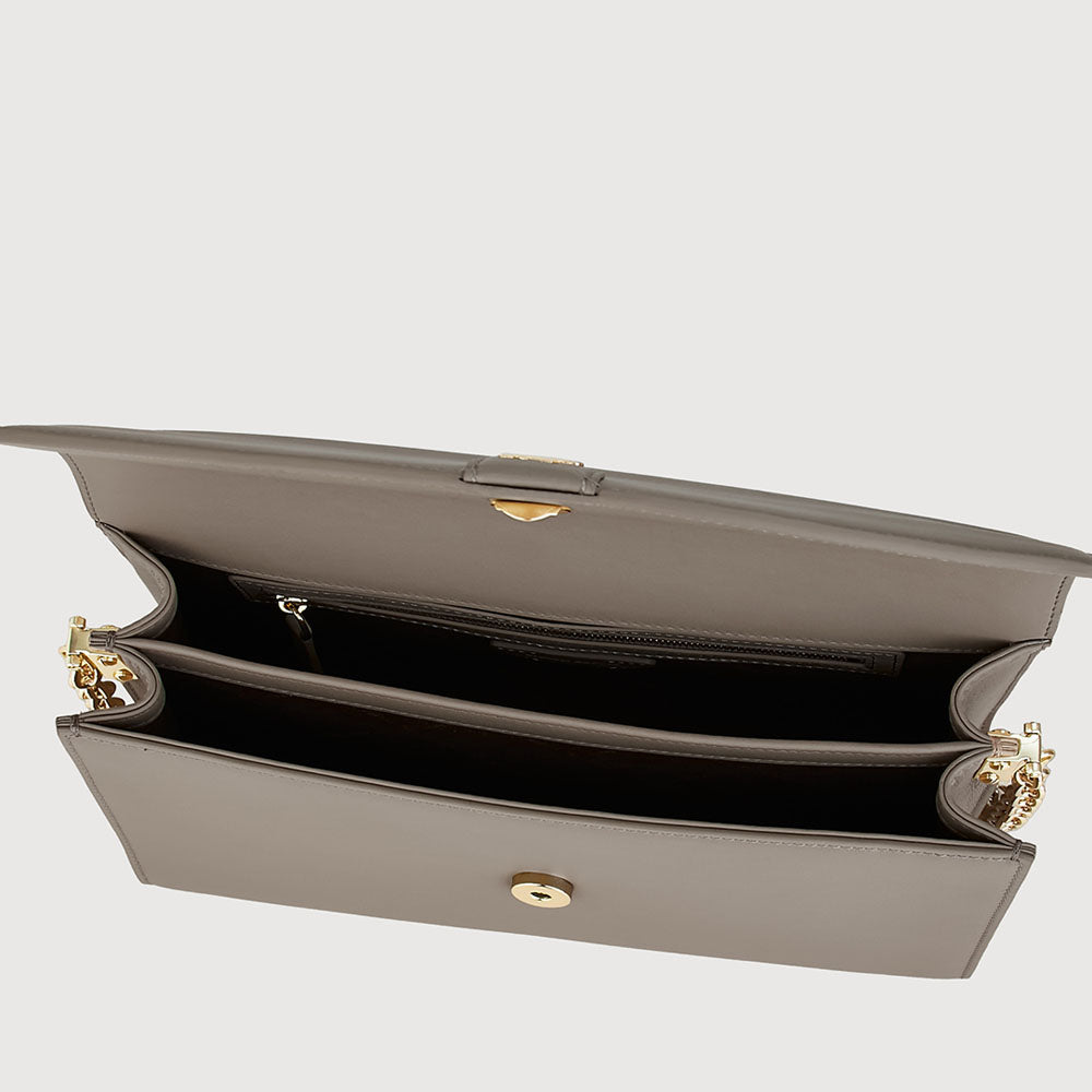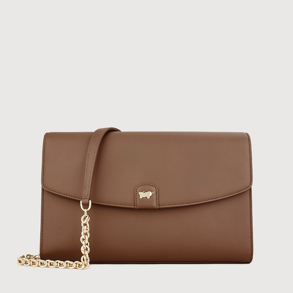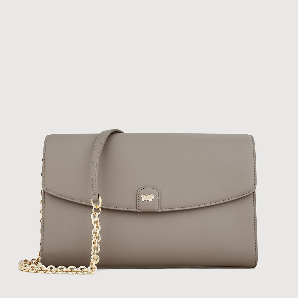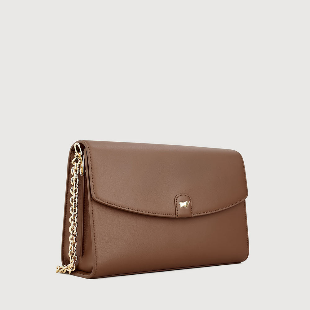 A modern essential crafted in soft gelato leather, accented with light gold hardware and the signature buffalo logo. Designed for the modern muse, Sophena features a refined chain-leather strap that balances structure with softness.