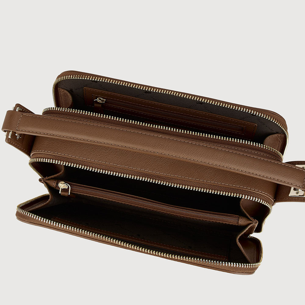 A modern classic reimagined, the Pan collection is crafted from luxurious haircalf leather that exudes sophisticated charm. Designed for versatility, Pan features a detachable and adjustable crossbody strap, offering customizable carrying options.