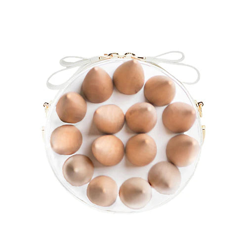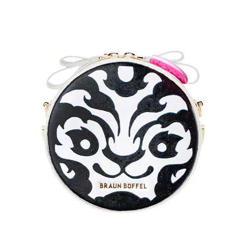 KATH pays homage to its vintage roots in its resemblance of a classic vanity tabletop mirror when propped up by its handle. With multiple ways to carry as a top handle, clutch and crossbody, she is THE statement piece and a head-turner.