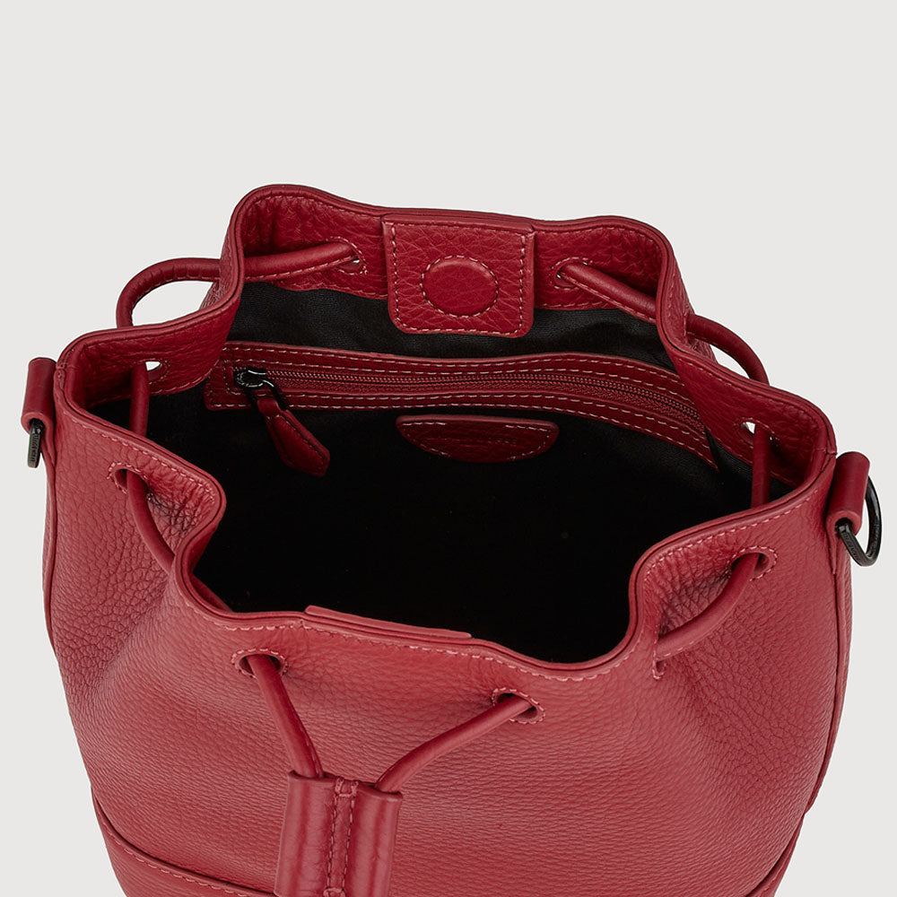 Wrapped in a rich festive red, the Gab bucket bag brings a polished, celebratory touch to any occasion. Crafted from soft Nappa genuine leather with matte-black hardware, it features thoughtful compartments and interchangeable straps for effortless style and functionality—perfect for the holidays and beyond.
